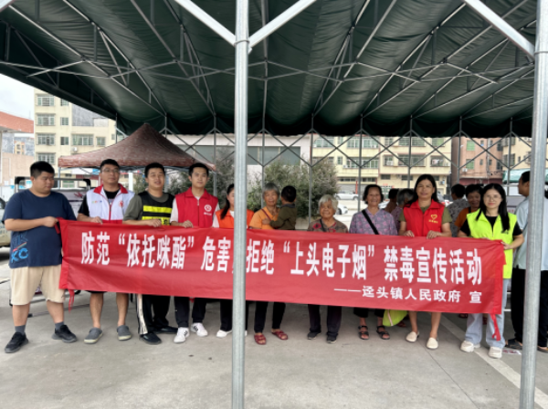 为有效防范毒品滥用,科学普及禁毒知识,提高广大人民群众识别、辨别新型毒品的能力,近日,迳头镇禁毒办联合迳头居委、志愿者开展防范“依托咪酯”危害,拒绝”上头电子烟“禁毒宣传活动。