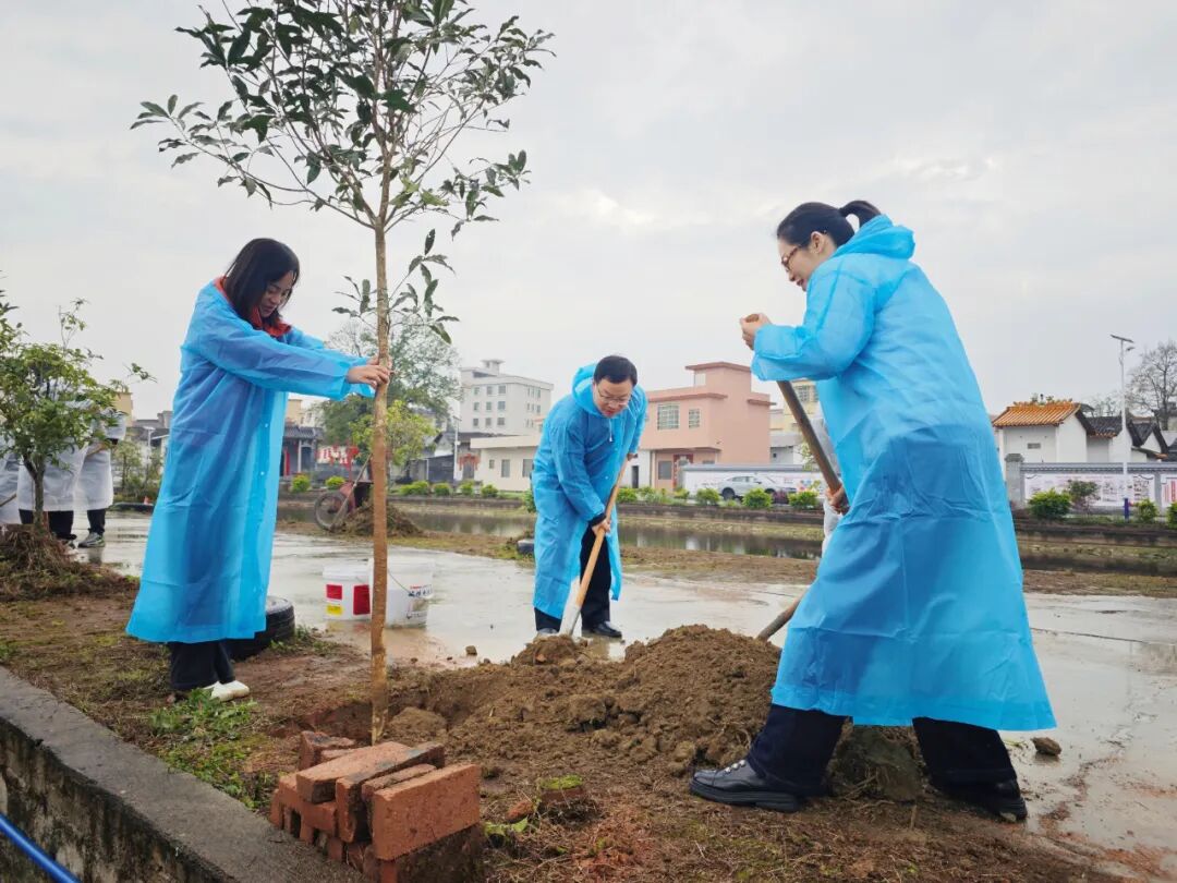 活动当天,虽下着绵绵细雨,但大家植树绿化的热情丝毫未减。在迳头镇大村村、汤塘镇新塘村植树现场,江红平带领广大党员干部群众、学生分工合作,三五人一组,一起挥锹铲土,有条不紊地完成每道植树工序。一株株新栽种的苗木迎风而立、错落有致,在春日里展现出勃勃生机。