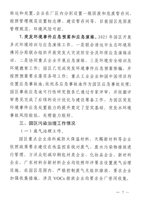 广清经济特别合作区广佛(佛冈)产业园2025年度环境管理状况评估报告