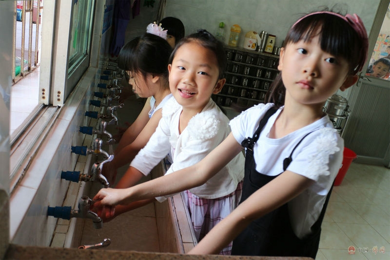 佛冈县机关幼儿园倡导小朋友们勤洗手、讲卫生,预防手足口病等疾病。( 魏亚男 摄)