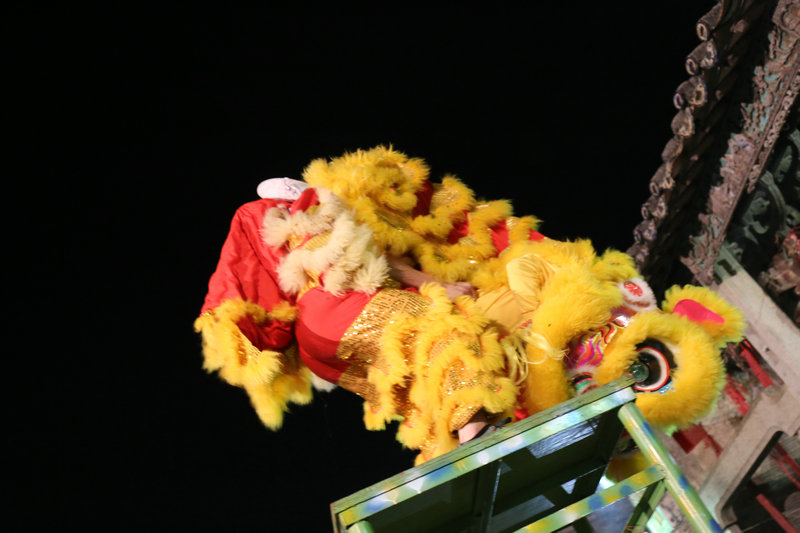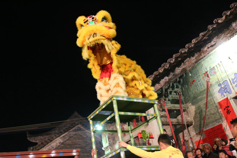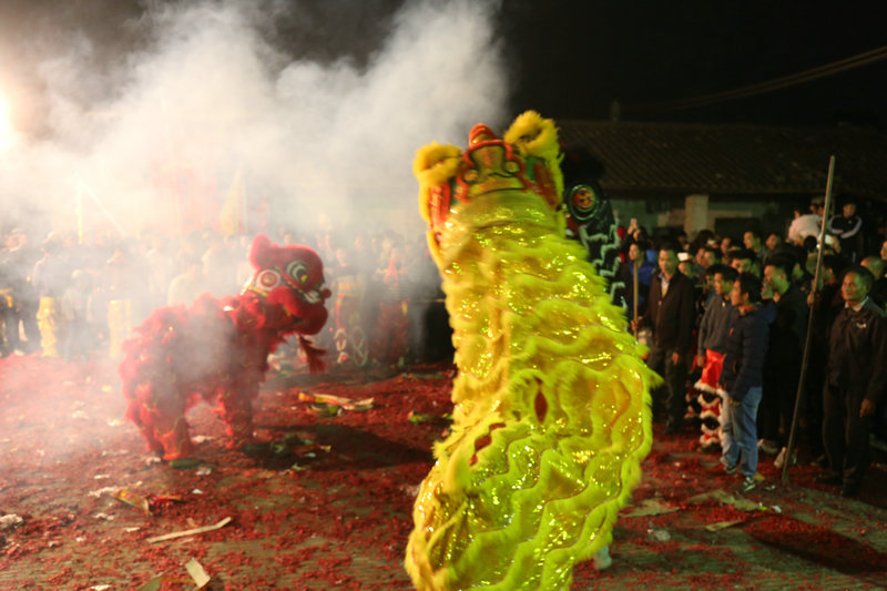 除此以外,好客的白沙塘村村民还邀请了狮队在现场助兴。雄狮 “搔头摆尾”、“仰视低顾”、“探测方向”,然后在高高的桌子上连续跳跃腾挪、360度转体等大胆创新的高难动作与新颖巧妙的采青技术令人叹为观止,赢得在场观众的阵阵喝彩。当醒狮拜完祠堂后,村民就开始放鞭炮,村民表示,希望能把这项好玩的民俗告知更多人,让更多人直接来感受斗炮的乐趣,也来体验白沙塘村的魅力。(记者:谢采容)