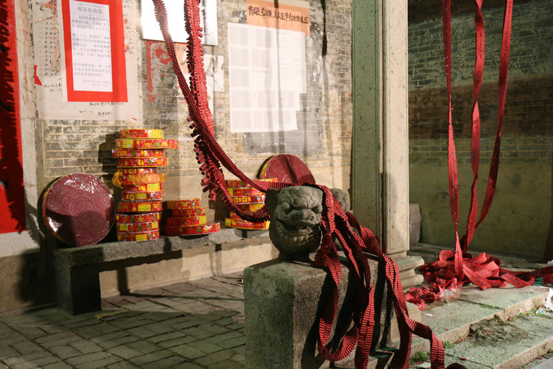 据了解,白沙塘村闹元宵活动的斗炮,是指在正月十六号这一天里面,全村的村民都会出资捐款购买鞭炮,把鞭炮悬挂于祠堂的屋檐上,等到晚上则每个祠堂依次放鞭炮。