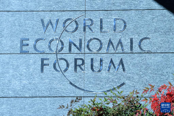 这是1月14日在瑞士日内瓦世界经济论坛总部拍摄的世界经济论坛标识。 新华社记者 连漪 摄
