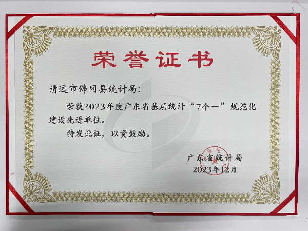 县统计局和各个乡镇对照规范化建设验收标准,坚持补足短板与强化优势并举,夯实基础与创新突破并重,解决问题与建章立制并行,扎实推进基层统计规范化建设取得阶段性成果。经申报单位自评,上级统计局现场查核和省统计局复核,佛冈县统计局、佛冈县石角镇、迳头镇通过基层统计“7个一”规范化建设第一批次验收,达到规范化建设先进标准,获得省统计局的通报表扬。
