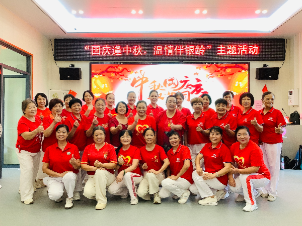 移步舞蹈室,《歌唱祖国》的旋律骤然响起。长者们手持鲜红的小国旗,放声合唱,熟悉的旋律引发全场共鸣,不少人眼中泛起了泪光。合唱结束后,一曲节奏舒缓的广场舞《我和我的祖国》拉开帷幕,长者们身姿轻摆,动作虽不似年轻人那般矫健,却满是对生活的热爱与对祖国的深情。