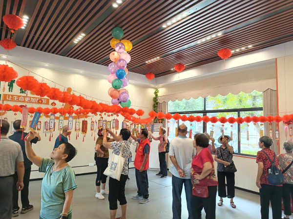 健身室的猜灯谜区挂满了五彩灯笼,谜题涵盖中秋民俗、国庆历史等知识。“‘国庆中秋传捷报’打一成语,是‘节节胜利’!”陈叔叔率先猜出,兴冲冲地跑到兑奖台领取了牙刷、杯子等奖品。长者们三五成群,时而蹙眉思索,时而拍手欢呼,猜谜声、笑声此起彼伏,邻里间的距离在趣味互动中悄然拉近。