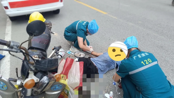 近日,石角派出所值班警组在巡逻时,发现一名男子晕倒在路边,手部受伤、血流不止。巡逻警员立即上前查看,并迅速采取初步止血等急救措施。