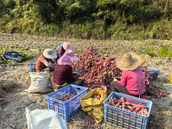 “以前自己种、自己卖,价格没保障,现在合作社保价收购,技术有指导、销路不用愁,心里踏实多了!”农户们纷纷称赞。红薯产业的蓬勃发展,不仅鼓起了村民的“钱袋子”,壮大了村集体经济,还带动了该村20余名闲置劳动力实现家门口就业。