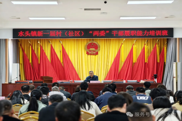 为推动新一届村(社区)“两委”班子快速进入工作状态、提升履职能力,筑牢基层治理和乡村振兴战斗堡垒,近日,水头镇举办新一届村(社区)“两委”干部履职能力培训班。省驻镇帮镇扶村工作队成员,镇领导班子、中层干部及新一届村(社区)“两委”全体干部参加培训,培训紧扣基层工作实际,内容兼具针对性、指导性和实操性,为基层干部充电赋能、明晰方向,凝聚起推动水头镇高质量发展的强大合力。