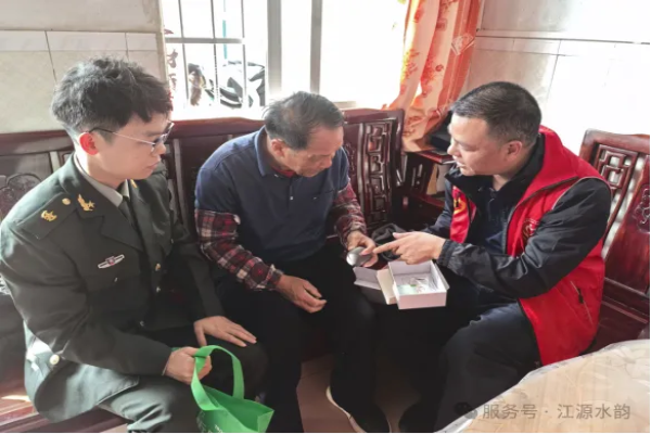 日前,水头镇退役军人服务站站长黄良峰与武装部干事冯晓鹏上门为老人完成佩戴调试。清晰交流能力恢复后,老人对各方支持表达感谢。