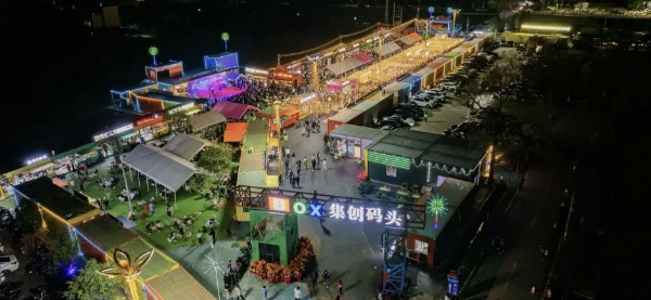 由集装箱改造而成的网红休闲街区,汇集特色小酒馆、文创商铺、露天影院等业态。夜晚灯光亮起,工业风与文艺风碰撞,可在小酒馆喝杯精酿,或是在露天影院看一场怀旧电影,感受小镇夜晚的独特魅力。