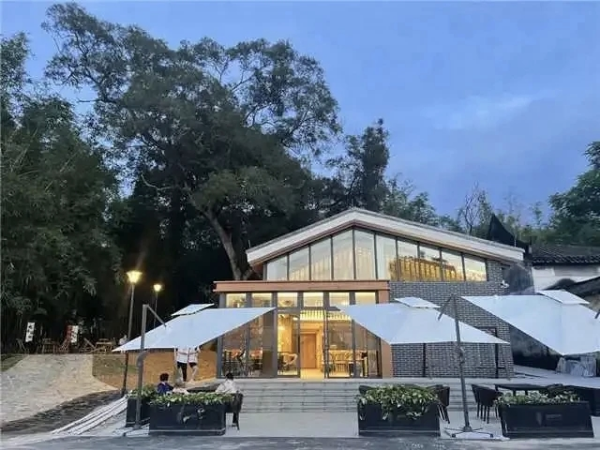 引入玉瑶山庄集团改造、运营的乡村咖啡屋。咖啡屋设有吧台、包厢、花园卡座、露天茶座、屋顶观景平台等,在设计上即保留了原始建筑的独特风貌,又采用“就地取材”的绿色理念,把瓦片、石头、陶罐等本地的老物件进行加工与装饰,使“传统”与“潮流”相碰撞,迎合了时下年轻人的喜好,成为新的乡村打卡点。