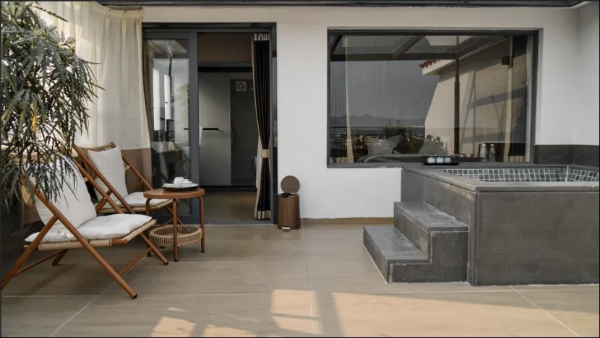 椿檀汤苑精品民宿:藏于汤塘古村,白墙黛瓦配雅致园林,每间房均带私汤泡池,夜赏古村星空静谧。