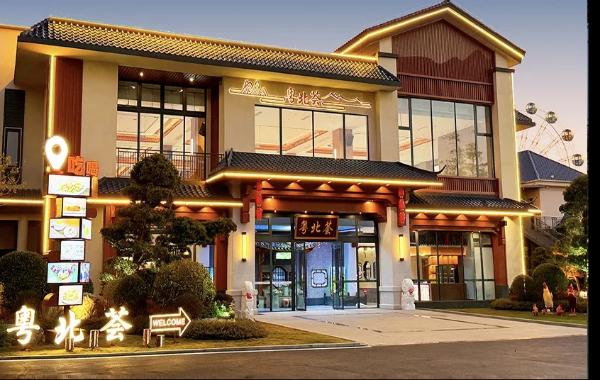 粤北荟:新中式徽派粤菜餐厅以徽派水墨江南风为设计基调黛瓦粉墙,雕花窗棂将古典美学与现代生活完美融合。