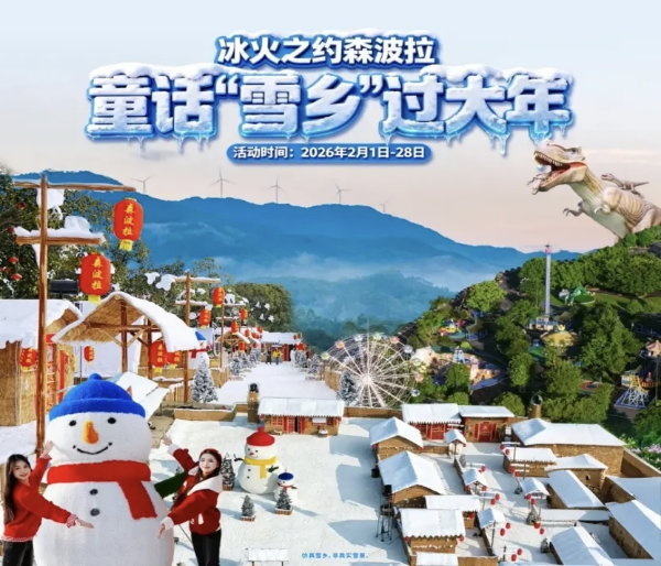 森波拉度假森林(国家AAAA级景区,石角镇羊角山森林公园内):春节主打“冰火双体验”,2月1日-28日(腊月十四至正月十二) 可泡富硒低硫火山温泉暖身,步入户外“奇幻仿真雪乡”,与雪乡熊仔、伐木工人偶互动,邂逅冬日童话。2月16日-21日(腊月二十八至年初七),亲子互动剧《神奇逗逗》、NPC欢乐大巡游、“非遗之夜”篝火晚会轮番上演,2月17日-21日(除夕至初四) 每晚有璀璨烟花秀;额外加码小丑泡泡秀、AI机器狗科技互动、侏罗纪恐龙见面会,趣味十足,年味持续升温。