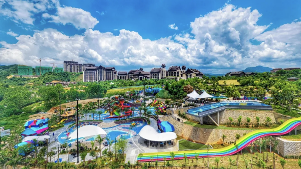 2.聚龙湾天然温泉度假村:老牌4A景区,露天温泉池错落林间,氡泉养生价值高,配套水世界、KTV、拓展设施,性价比拉满,适合家庭与团体出游。