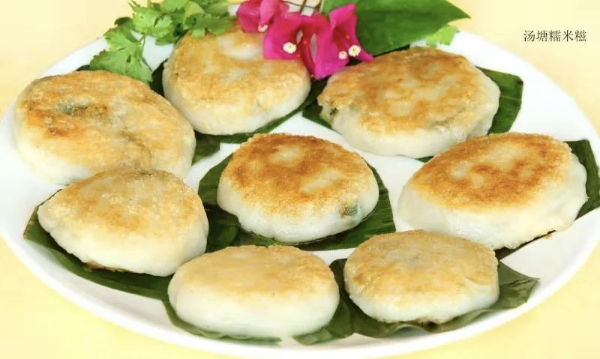 同样是非遗传承的汤塘糯米糍,手工捶打的糯米皮软糯不粘牙,裹满花生芝麻香甜内馅,既能徒步路上补充能量,也能当饭后解腻小食。