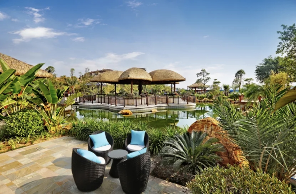熹乐谷温泉度假酒店:私汤套房带庭院泡池,亲子主题房含童趣设施,配套水世界、健身房,出行省心。