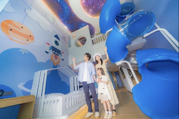 森波拉松鼠酒店/森林酒店:松鼠酒店以星空、森林等为主题,配套温泉泳道、嬉水乐园;森林酒店全新升级,每间房带全景森林阳台,沉浸式体验森系度假。
