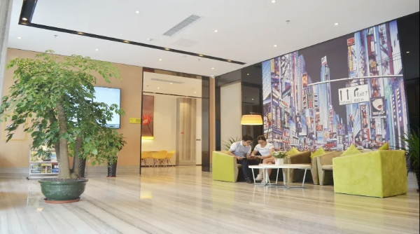 IU酒店(佛冈店):年轻化主题设计,亲子房含儿童帐篷、卡通抱枕,公共区域有休闲书吧、游戏区,适合年轻游客与亲子家庭。