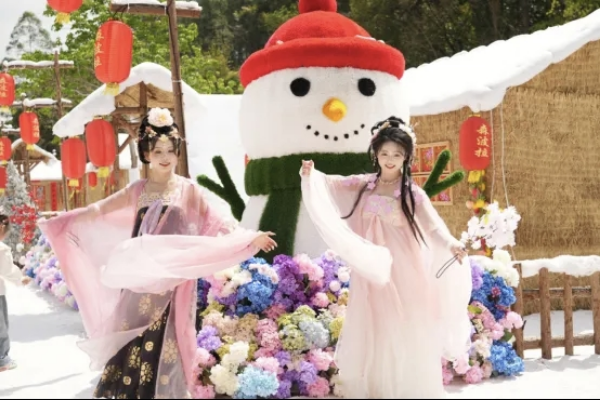 更有反差感拉满的“童话雪乡”,不用远赴北方,在春日的佛冈就能玩雪、拍雪景大片,大人小孩都能玩到尽兴。