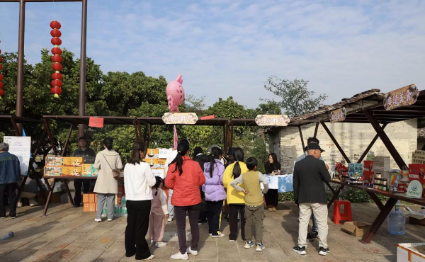除了精彩的节目,活动现场设置了“非遗美食”“佛冈特产”等特色市集摊位,让村民在观赏之余也能品味地道乡韵。现场还有一群身着各色华美汉服的演员与村民、游客亲切互动,进一步增强了活动的沉浸感与体验性。