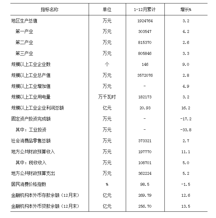 2025年1-12月全县主要经济指标