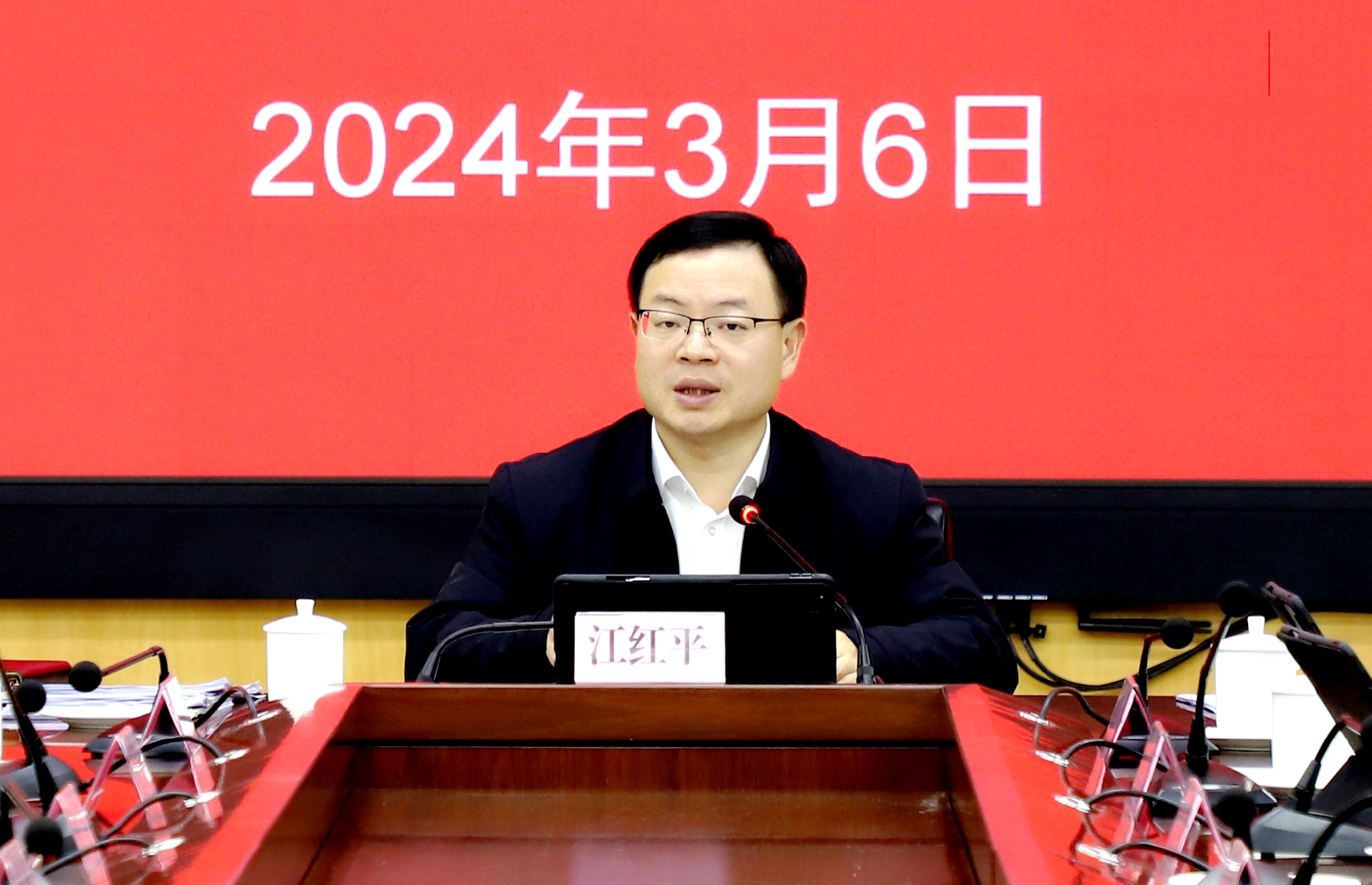 3月6日下午,县委副书记、县长江红平主持召开县政府党组会议和十六届第 62 次县政府常务会议,强调全县上下要紧扣全年发展目标,延续良好势头,坚定高质量发展的信心和决心,大抓产业发展和安全生产,以重大项目建设推动经济持续回升向好,确保一季度经济实现“开门红”。