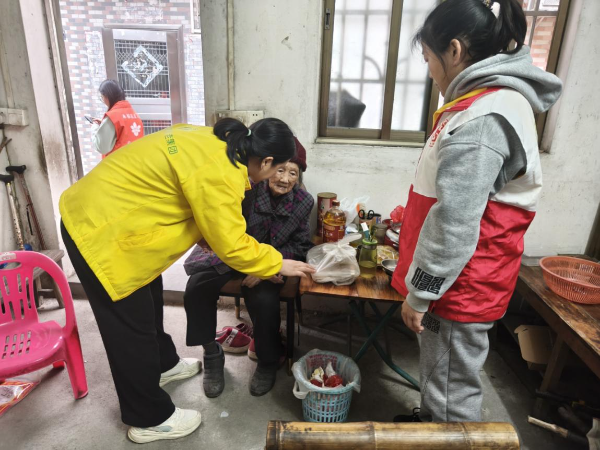 用餐环节,中心工作人员主动走近老人,耐心询问用餐感受、细心了解生活需求,陪老人们拉家常、话冷暖,现场其乐融融;与此同时,由志愿者组成的服务小队,带着打包好的暖心餐食与爱心物资整装出发,逐一探访困难老人家庭,与老人亲切交流,详细询问他们的身体状况和生活难题,将关怀与温暖实实在在送到老人身边,让老人们在寒冬中感受到浓浓的暖意。